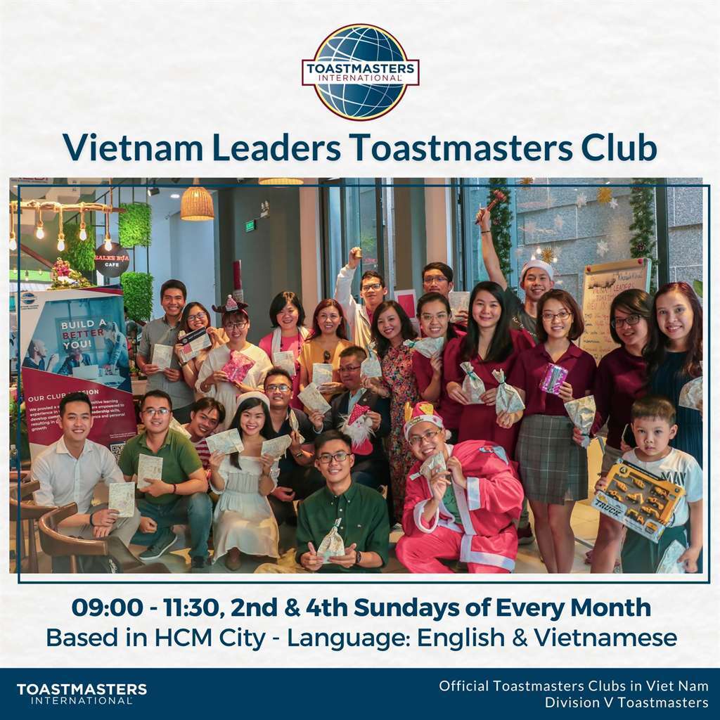 Bạn có thể lên trang chủ Toastmasters.org để có những thông tin mới nhất từ Toastmasters International, hoặc cập nhật thông tin từ Fanpage Toastmasters Việt Nam. Nếu có câu hỏi khác, bạn đừng ngại liên hệ qua các nút thông tin cuối trang.